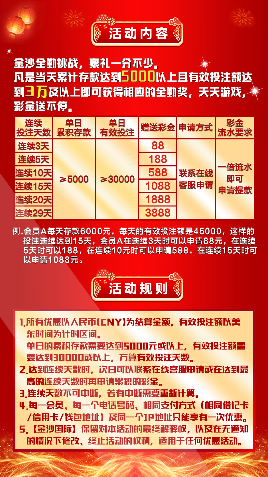 【金沙国际】保留对本活动的最终解释权,以及在无通知的情况下修改、终止活动的权利,适用于所有优惠。